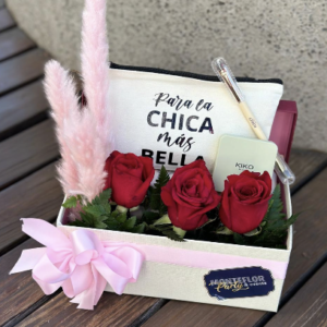 Arreglo floral en canasta artesanal